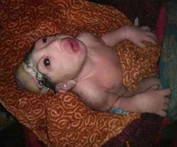 जानकारी के अनुसार रविवार दोपहर प्रखंड के धनगामा पंचायत के चौकी गांव वासी नूर सलीम की पत्नी कोहिनूर खातून को प्रसव पीड़ा के बाद अस्पताल लाया गया, जहां उसने इस बच्चे को जन्म दिया। महिला की यह पांचवी संतान है। बच्चे को देखकर मां भी डर गई है। उसे बाहरी दूध दिया जा रहा है।