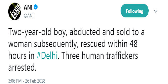 पुलिस अधिकारी ने बताया कि 25 फरवरी की शाम महिला को आनंद विहार बस अड्डे से दबोच लिया गया। उसने बताया कि बच्चे को 45 हजार रुपये में बवाना के ईश्वर कॉलोनी में रहने वाली रश्मि को बेच दिया है। पुलिस ने रश्मि के घर से बच्चे को बरामद कर उसे व उसके एक भतीजे सौरभ को भी गिरफ्तार कर लिया।