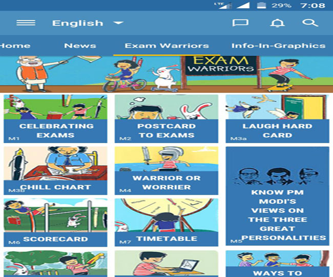 नमो एप में विद्यार्थी राम्याकृष्णा के विचार देखिए, 'डियर एग्जाम, मेरी प्रतिभा आपके पैमाने से बड़ी है।' शगुन जैन का कहना है, 'किसी एग्जाम में असफलता मुझे परिभाषित नहीं करती। जिंदगी सपनों से भरी है, एक में हार गए तो दूसरे के लिए प्रयत्न करो।
