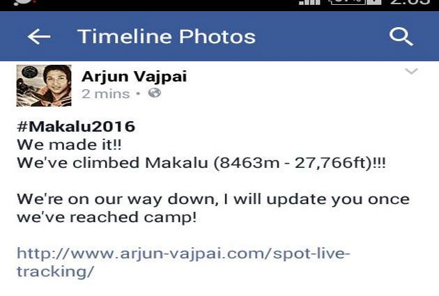 सतर्कता और सुरक्षा के मद्देनजर अर्जुन इस बार जीपीएस से लैस थे। उसी से उनके चोटी पर पहुंचने की पुष्टि हुई है।