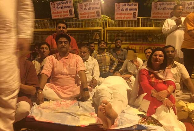 केजरीवाल के घर के बाहर धरने पर बैठे सांसद महेश गिरी, बोले- माफी मांगें CM