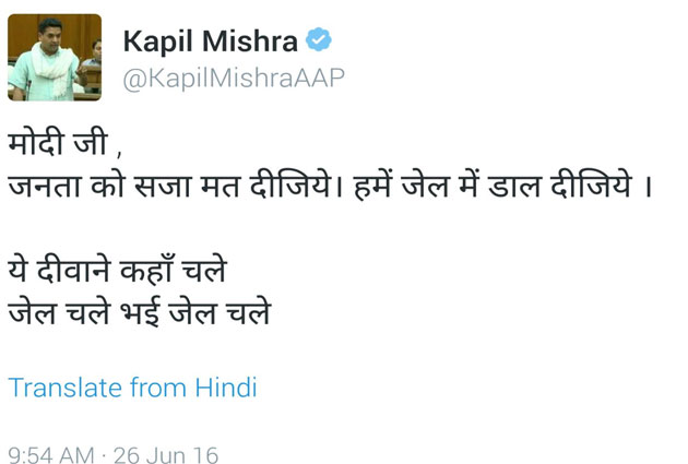 — Arvind Kejriwal (@ArvindKejriwal) June 26, 2016