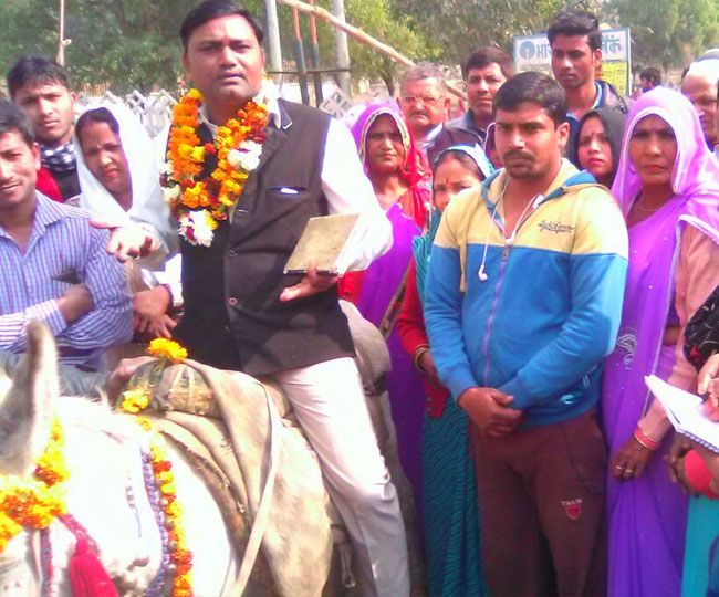 गौरतलब है कि देवी राम प्रजापति गौतमबुद्धनगर की दादरी सीट से अपनी किस्मत आजमा रहे हैं। वह गौतमबुद्धनगर के निवासी हैं और अपने गांव से सोमवार को एक गधे पर सवार होकर कर नामांकन के लिए पहुंचे थे।