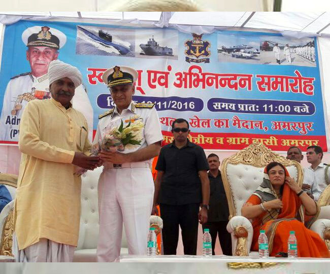 नौसेना प्रमुख एडमिरल सुनील लांबा शनिवार को परिवार सहित अपने पैतृक गांव अमरपुर पहुंचे। उनके आगमन पर ग्राम वासियों की ओर से भव्य अभिनंदन समारोह आयोजित किया गया। एडमिरल के साथ उनकी धर्म पत्नी रीना लांबा भी मौजूद थीं। एडमिरल लांबा ने बचपन में गांव में बिताए गए पलों को साझा किया।