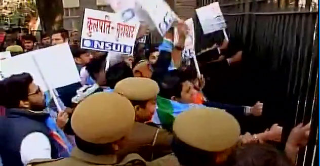 एनएसयूआई कार्यकर्ताओं ने अपने हाथों में कुलपति मुर्दाबाद के बैनर ले रखे थे। उन्होंने कुलपति के खिलाफ जमकर नारेबाजी की। हालांकि, कार्यक्रम के विरोध को देखते आयोजकों ने पहले ही दिल्ली पुलिस से सुरक्षा की मांग की थी और शनिवार को कार्यक्रम स्थल पर दिल्ली पुलिस के जवान भी तैनात थे। एनएसयूआई कार्यकर्ताओं की संख्या को देखते हुए फिलहाल डीयू प्रशासन ने और अधिक पुलिस बल की मांग की है।
