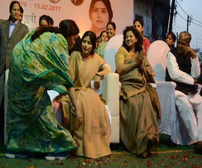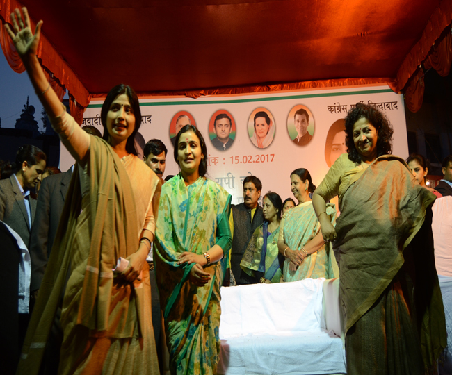 तस्वीरें : देवरानी के लिए प्रचार करने उतरी डिंपल यादव, अपर्णा ने पैर छूकर किया अभिवादन