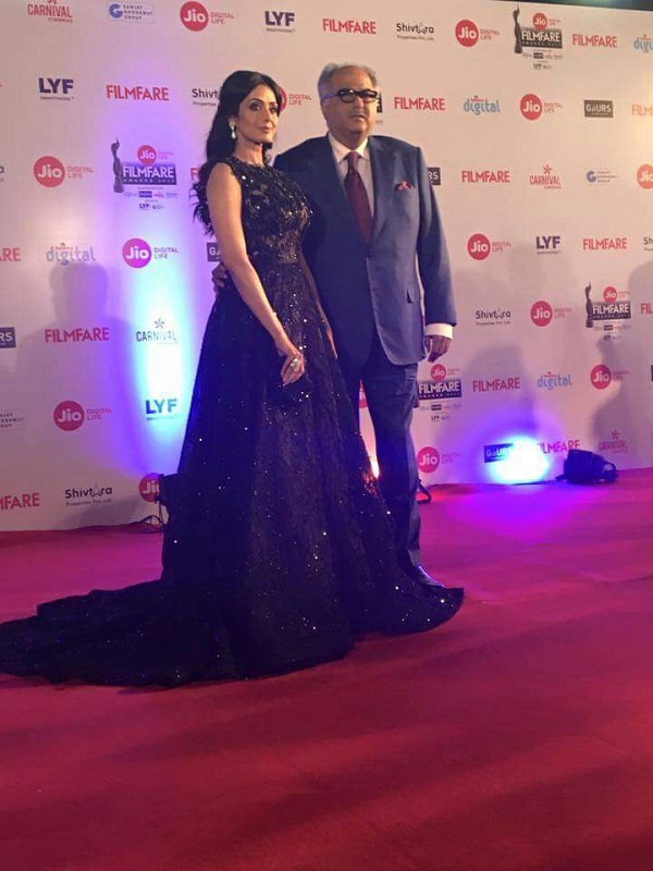 इन सबके बीच श्रीदेवी भी बोनी कपूर के साथ अवार्ड समारोह के रेड कारपेट पर नज़र आयीं। वो काफी खूबसूरत लग रही थीं।