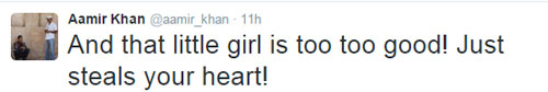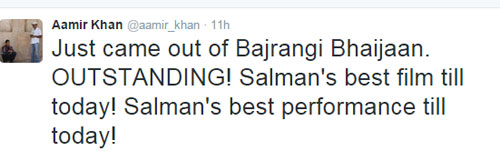 आमिर खान ने एक ट्वीट में यह भी लिखा है कि कबीर खान ने वाकई में एक खास फिल्म बनाई है। और तो और वो इस फिल्म की जान यानी छोटी सी बच्ची हर्षाली मल्होत्रा की तारीफ करना भी नहीं भूले हैं।