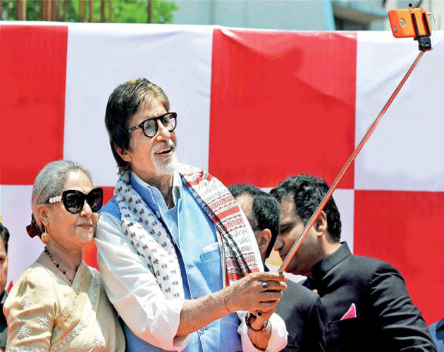 नई दिल्ली। अमिताभ बच्चन और जया बच्चन बॉलीवुड की खूबसूरत जोडि़यों में से एक हैंं। इस उम्र में भी अमिताभ बॉलीवुड से लेकर सोशल साइट पर काफी सक्रिय रहते हैं। एक ज्वेेलरी शोरूम के उद्घाटन के मौके पर अमिताभ पत्नी जया संग कोलकाता पहुंचे, जहां दोनों ने सेल्फी स्टीक के साथ ये खूबसूरत सेल्फी ली।