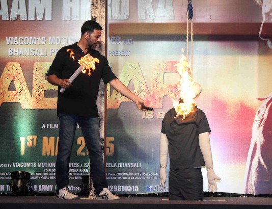 अपनी फ़िल्म 'गब्बर' की एक प्रमोशनल इवेंट में अक्षय कुमार ने स्टेज पर एक पुतले को फांसी से लटकाकर उसमें आग लगायी थी। ये पुतला भ्रष्टाचार का प्रतीक था और अक्षय फ़िल्म में इसी बुराई के ख़िलाफ़ जंग छेड़ते हैं।