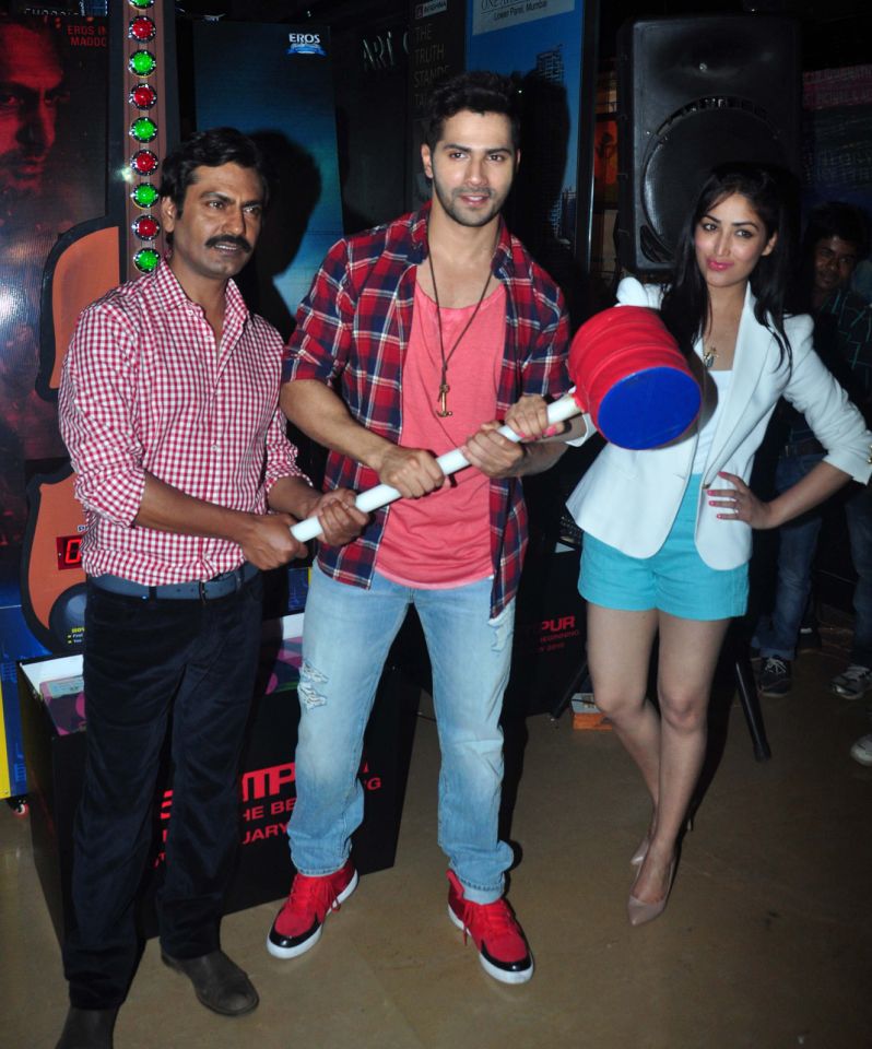 बदले की थीम पर बनी 'बदलापुर' के प्रमोशंस में वरुण धवन हथौड़े का मॉडल लेकर घूमते नज़र आये थे। फ़िल्म में उनका किरदार हाथौड़े से ही क़त्ल करता है।