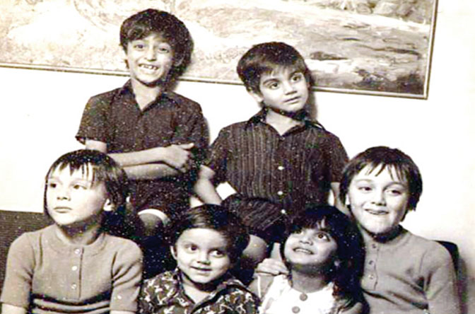 सलमान अपने भाईयों अरबाज, सोहैल और बहन अलविरा के साथ। अन्य कजिन्स भी। सलमान लेफ्ट में खड़े हैं।