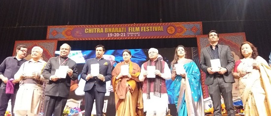 मुंबई। देश की राजधानी नई दिल्ली में चल रहे चित्र भारती फिल्म फेस्टिवल के दौरान राकेश मित्तल की किताब ''विश्व सिनेमा की 100 सर्वश्रेष्ठ फिल्में'' का लोकार्पण किया गया। इस मौके पर बॉलीवुड जगत की हस्तियां मौजूद थी।