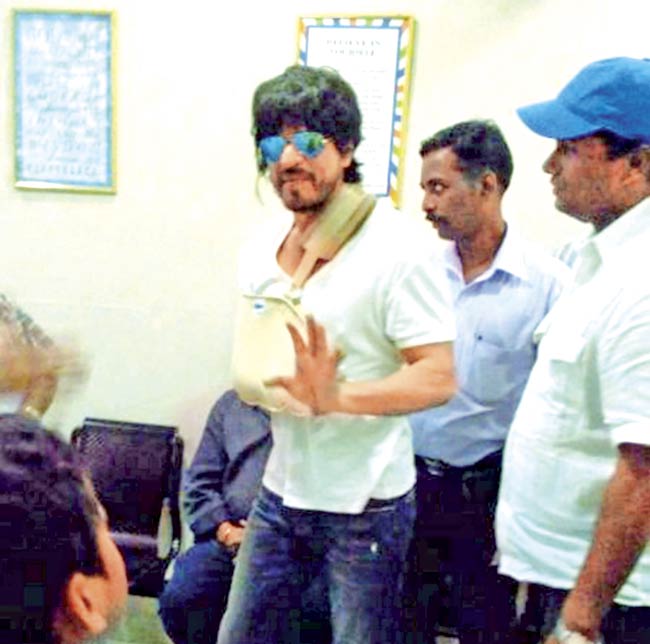 फ़राह ख़ान की फ़िल्म 'हैपी न्यू इयर' की शूटिंग के दौरान भी शाहरुख़ खान को चोट आई थी। फ़िल्म की शूटिंग एक बड़े होटल में हो रही थी। शूटिंग के दौरान एक कांच का दरवाजा शाहरुख़ पर गिर गया था और शाहरुख़ को इसके बाद तुरंत अस्पताल में भरती कराया गया। हालांकि, यह चोट उतनी गहरी नहीं थी मगर इस एक्सीडेंट ने कई सुर्खियां बटोरीं थी। इसी फ़िल्म की शूटिंग के दौरान अभिषेक बच्चन को भी छोटी सी चोट आयी थी, उनके हाथों में चोट लग गई थी।