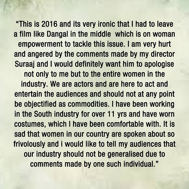 दरअसल मामला सोमवार को तब सामने आये था जब तमन्ना ने एक ट्वीट किया। गुस्से में किये गए इस ट्वीट में तमन्ना ने निर्देशक से सिर्फ उनसे नहीं सारी महिलाओं से माफ़ी मांगने को कहा। तमन्ना ने कहा कि वो 11 साल से इस इंडस्ट्री में है जो कम्फर्ट लगता है वो कपड़े पहनती हैं लेकिन किसी को ये हक़ नहीं है कि उनके कपड़ों पर अभद्र भाषा में कमेंट करें। तमन्ना का लिखा पूरा आप यहां पढ़ सकते हैं।