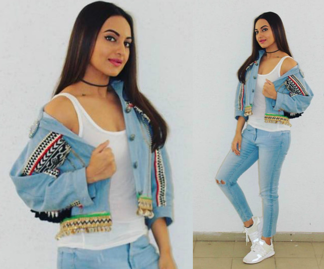 फैशन डायरीज़: देसी टच वाले इस डेनिम जैकेट में दिखी सोनाक्षी, फिर सनी ने किया इन्हें कॉपी