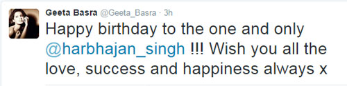 फिलहाल ये रहा गीता बसरा को वो ट्वीट, जिसे उन्होंने अपने बॉयफ्रेंड हरभजन सिंह के बर्थडे पर किया है।