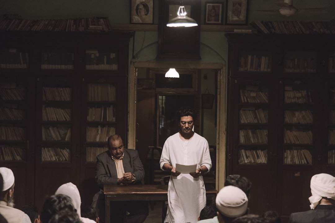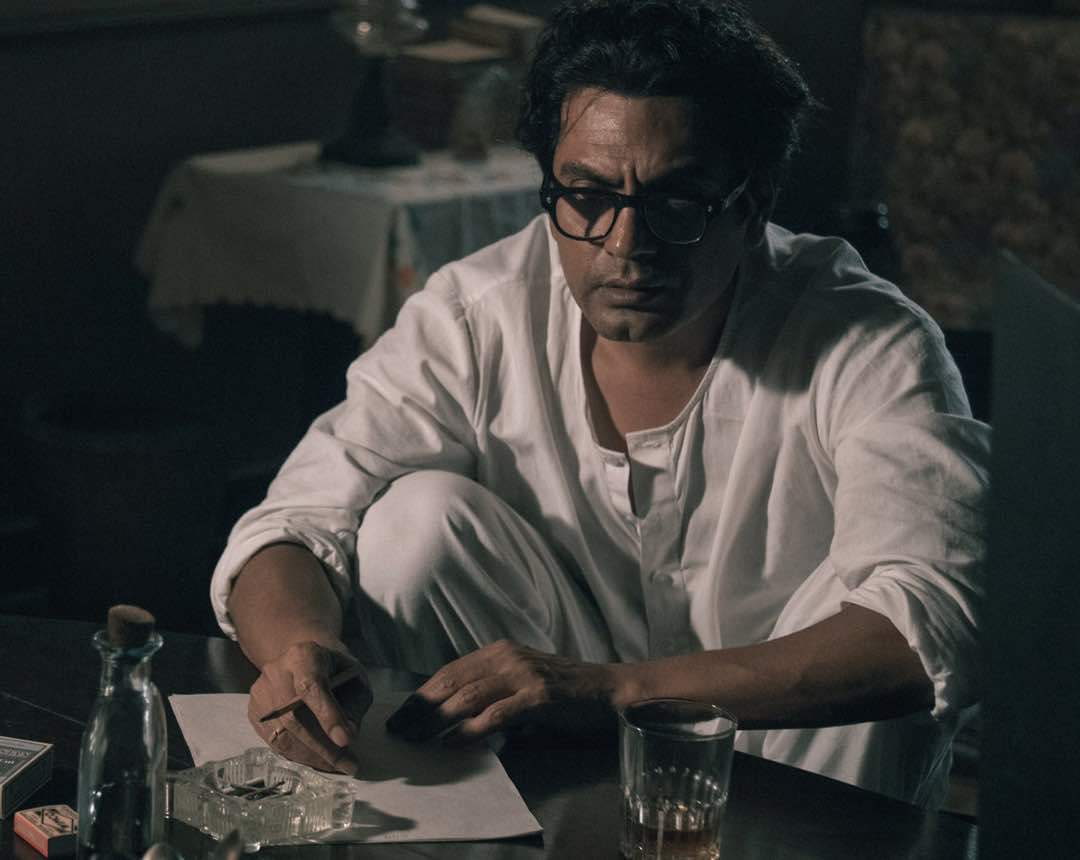 चश्मा लगाए, हाथ में कलम लिए कागज़ पर कुछ लिखने ही वाले हैं मंटो, याने नवाज़। लुक्स तो बिलकुल मंटो की तरह अपना लिया है।