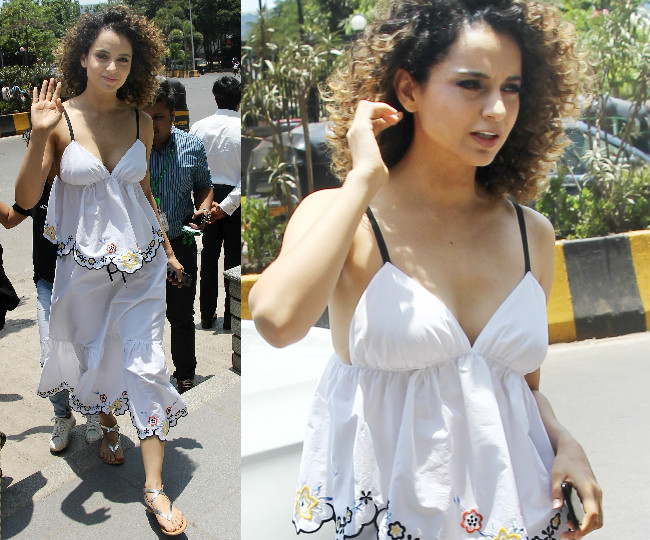 वाइट कलर, हल्के ब्लैक एंड येलो फ्लावरी एम्ब्रोइडरी की ये स्कर्ट-ड्रेस समर सीजन के लिए परफेक्ट है। इसके साथ कंगना ने पहने सिल्वर स्लिपर्स और अपना लाइट मेकअप!