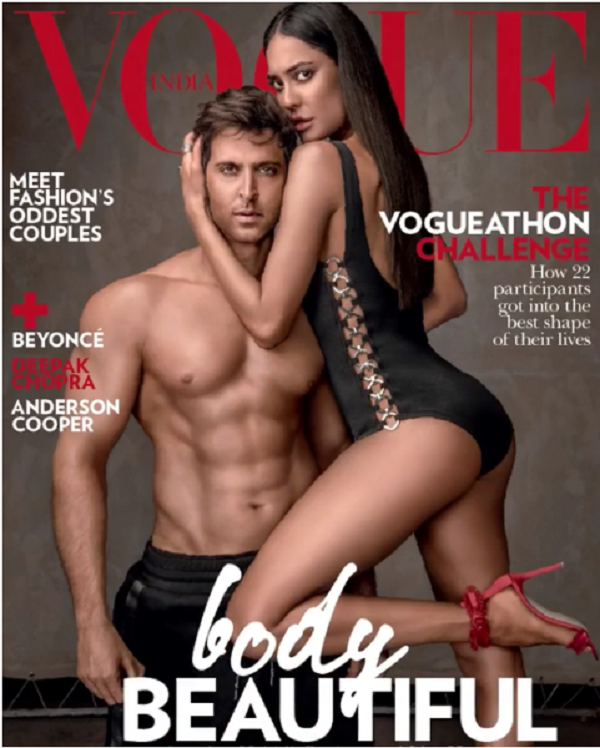 ये तस्वीर है रितिक रोशन और लीज़ा हेडन की, जो साल 2017 के लिए वॉग मैग्जीन के कवर के लिए शूट की गई है। थीम सिलेब्रिटी फिटनेस और ब्यूटीफुल बॉडी का है। दोनों ने इसे बखूबी साबित कर दिखाया है। अनाइता श्रॉफ अदजानिया ने रितिक और लीज़ा की स्टाइलिंग की है और रितिक शर्टलेस बॉडी के साथ अपनी काबिलियत भी दिखा रहे हैं। रितिक जहां सिल्क जॉगर में हैं वहीं लीज़ा ने ब्लैक बॉडीसूट के साथ मेटालिक एक्सेसिरीज पहनी है।
