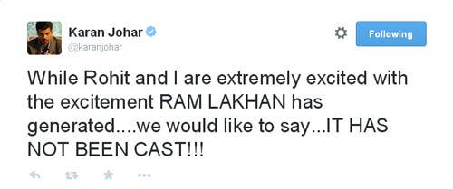जौहर ने ट्विटर पर लिखा, 'रोहित और मैं राम लखन के उत्साह से पहले ही उत्साहित हैं। हम कहना चाहेंगे कि अभी इसके लिए किसी को कास्ट नहीं किया गया है।'