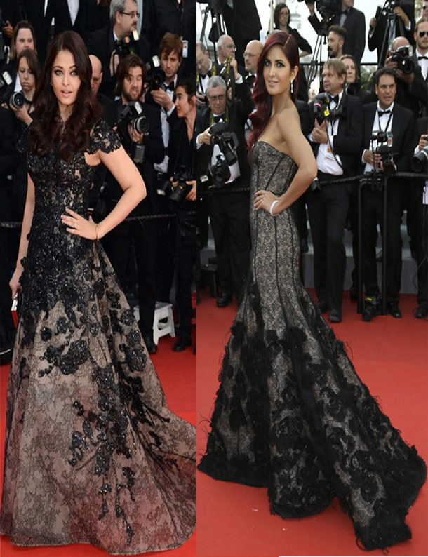 कट्रीना की ये ड्रेस हालांकि पहले तो किसी ने नहीं पहनी थी लेकिन ये ऐश्वर्या राय बच्चन की उस ड्रेस से जरूर मेल खाती थी जो एक बार उन्होंने कान्स पर ही पहनी थी। 2013 में ऐश्वर्या ने कान्स में ऐली साब की ब्लैक ड्रेस गाउन पहनी थी।