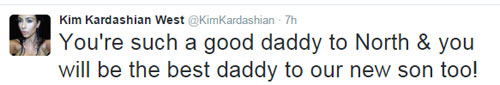 किम कार्दाशियां ने फादर्स डे पर ट्वीट कर कहा कि उनका होने वाला दूसरा बच्चा बेटा होगा। उन्होंने अपने पति के लिए लिखा, ''आप नॉर्थ के इतने अच्छे पिता हैं और आप हमारे बेटे के भी बेहतरीन पिता साबित होंगे।' ये रहा उनका ट्वीट।