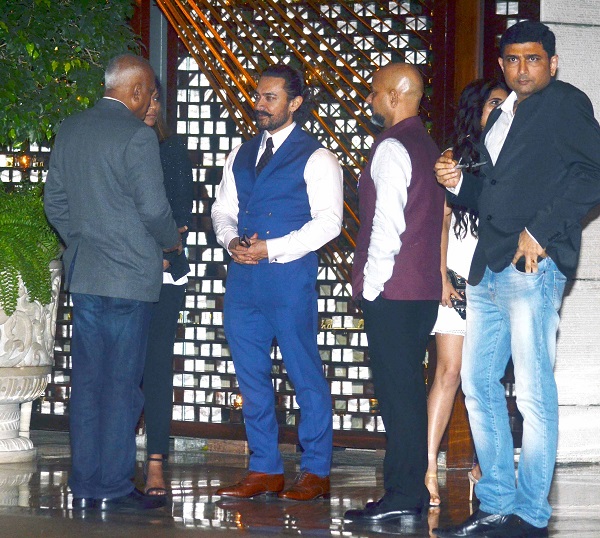 गौरतलब है कि 19 वें मामी फ़िल्म फेस्टिवल के प्रायोजक मुकेश अंबानी की कंपनी ही है और मामी की चेयरपर्सन हैं किरण राव। ज़ाहिर है इस पार्टी में आमिर और किरण विशेष मेहमान रहे। पहली तस्वीर में आप आमिर ख़ान को पार्टी के दौरान अन्य लोगों से बातचीत करते हुए देख सकते हैं। इस ब्लू ऑउटफिट में आमिर काफी कूल लग रहे हैं।