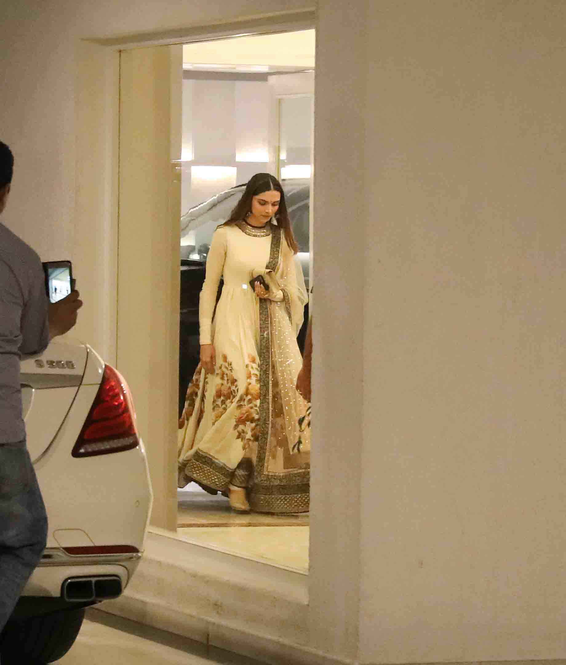 इंडियन ऑउटफिटर और सिंपल स्ट्रेट हेयर्स के साथ दीपिका रणवीर के साथ एक गाड़ी में आई और दोनों एक साथ काफी खुश नज़र आ रहे थे। रणवीर भी यहां अपने बड़े बालों की चोटी बनाए वाइट शर्ट में दिखाई दिए। फ़िल्मों की बात की जाए तो ये दोनों एक साथ संजय लीला भंसाली की आनेवाली फ़िल्म पद्मावती में नज़र आने वाले है जिसमें शाहिद कपूर भी है।