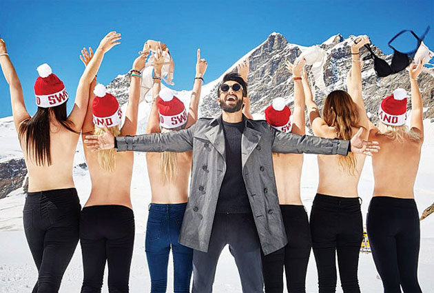 रणवीर सिंह ने अपनी एक फोटो सोशल मीडिया पर शेयर की है, जिसमें वो कुछ टॉपलेस मॉडल्स के साथ स्वीटरजरलैंड की हसीन वादियों में डांस करते नजर आ रहे हैं।