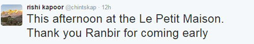 नीतू ने भी यही तस्वीर इंस्टाग्राम पर शेयर की है और लिखा है कि अपने डैड के बर्थडे सेलेब्रेशन में रणबीर भी शामिल हुए। एक दिलचस्प बात आपको ये भी बता दें कि इस वक्त रणबीर की गर्लफ्रेंड कट्रीना भी सिद्धार्थ मल्होत्रा के साथ अपनी अगली फिल्म 'बार बार देखो' की शूटिंग के लिए लंदन में ही मौजूद हैं।