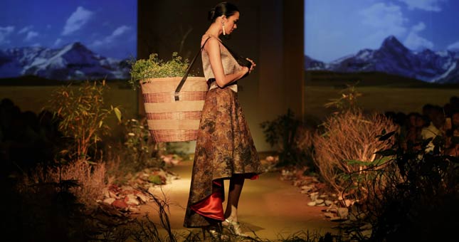 ज्यादातर कपड़ों पर पंछियों से प्रेरित सिलुएट्स दिखे, जो प्रकृति का रंग दे रहे थे। साथ ही शो किए गए कपड़ों को लुक देने के लिए ट्रेडिश्नल एक्ससरीज का भी इस्तेमाल किया गया था।