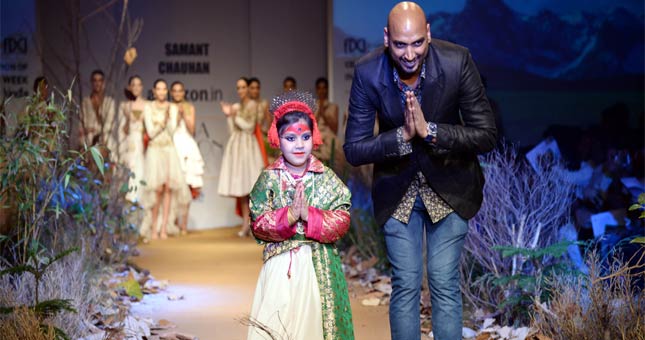 अमेजन की तरफ से आयोजित फैशन शो के दूसरे दिन गुरुवार को डिजाइनर समंत चौहान ने अपना कलेक्शन पेश किया। उनका ये कलेक्शन कुछ खास और नेपाल से प्रेरित था। पिछले सात सीजन से राजपुताना कलेक्शन पेश कर रहे समंत ने इस बार नेपाल में पूजी जाने वाली कुमारी से
