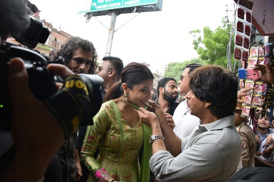 जहां एक ओर अनुष्का ने शाहरुख़ को पान खिलाया तो वही दूसरी ओर शाहरुख़ ने डायरेक्टर इम्तियाज़ को बनारसी पान खिलाया।