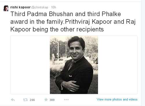 कपूर खानदान के इन तीनों महान सदस्यों को पद्मभूषण जैसे प्रतिष्ठित पुरस्कार से भी सम्मानित किया जा चुका है। शशि कपूर के भतीजे ऋषि कपूर ने इस बारे में ट्विटर पर जानकारी दी है।