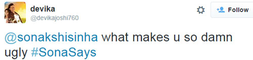 दरअसल, देविका जोशी नाम के ट्विटर हैंडल से पूछ लिया गया, 'सोनाक्षी आप इतनी बदसूरत कैसे हो?