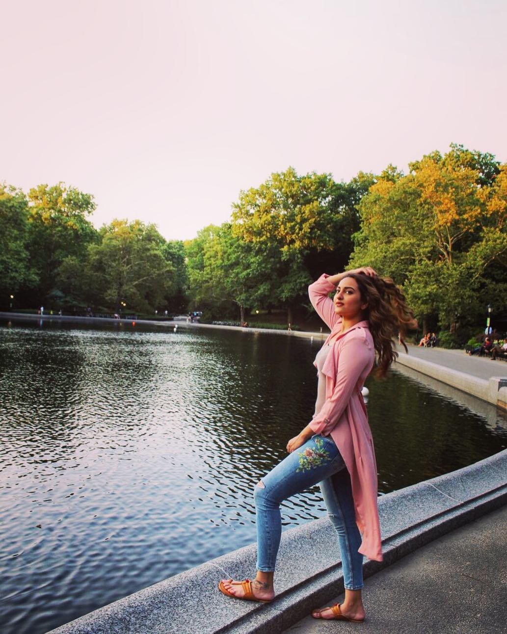 सोनाक्षी का एक और क़ातिल पोज़! पिंक लॉन्ग जैकेट, एम्ब्रोइडेड डेनिम और न्यू यॉर्क का सेंट्रल पार्क!
