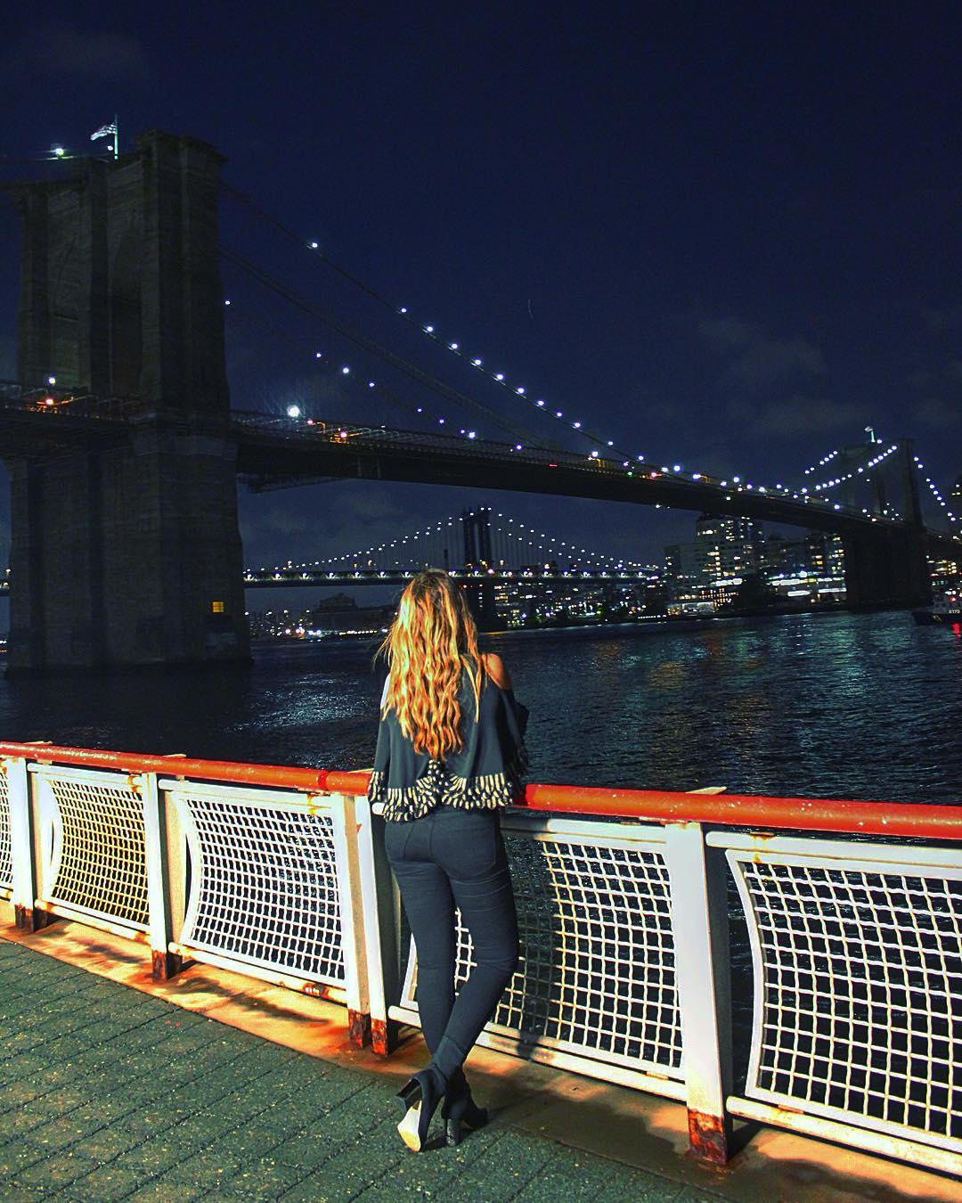 रात को चमकतीं ये लाइट्स और ब्रूकलिन ब्रिज का ये नज़ारा कितना सुन्दर हैं। सोनाक्षी ने यहां ब्लैक टॉप और ब्लैक डेनिम पहनी है और वो जमकर इन ख़ूबसूरत नज़ारे का मज़ा ले रहीं हैं।
