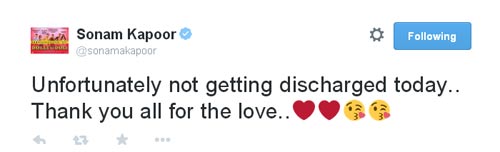 सोनम ने आगे ट्वीट किया, 'बदकिस्मती से आज मुझे छुट्टी नहीं मिल रही है। आप सबके प्यार के लिए शुक्रिया।'