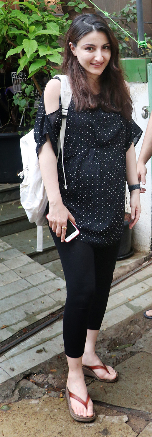 11. इस तस्वीर को देखर तो आपके मूहं से भी Awww निकला होगा। पोल्का डॉट के इस क्यूट लूज़ टॉप में देखिये कैसे बेबी बंप को फ्लॉन्ट कर रहीं हैं सोहा।
