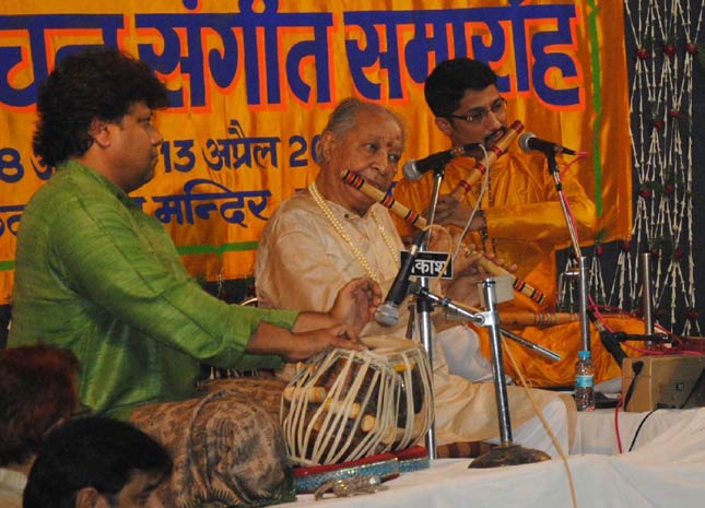 पं. बिरजू महाराज के युवा पुत्र पं. दीपक महाराज ने मंच संभाला। कथक में उपज, थाट, उठान, रेला, गत, फर्द, बंदिश समेत पारंपरिक प्रस्तुतियां दीं। पुत्र के हर भाव पर विभोर होते पिता ने भी साथ दिया और इस उम्र में भी निहाल कर डाला। तीन ताल में धुन मंगल मूरत मारुति नंदन... पर भाव सजाए। घुंघरू को नायिका व तबला को नायक बनाया और दोनों के बीच सधी जुगलबंदी कराया।