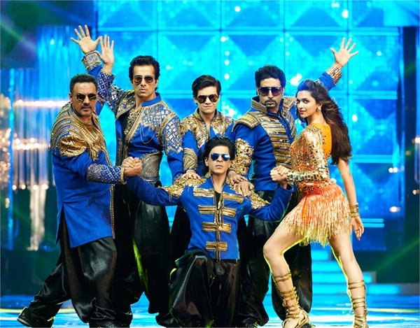 शाह रुख़ ख़ान की फ़िल्म का टाइटल 'हैप्पी न्यू ईयर' था, मगर फ़िल्म एक हाई प्रोफ़ाइल चोरी पर आधारित थी। एसआरके एंड पार्टी एक डांस रिएलिटी शो की आड़ में एक बड़ी चोरी को अंजाम देते हैं, जो दरअसल एक रिवेंज के लिए की जाती है। फ़िल्म में शाह रुख़ और दीपिका पादुकोण के अलावा अभिषेक बच्चन, बमन ईरानी, सोनू सूद, विवान शाह और जैकी श्रॉफ़ मुख्य भूमिकाओं में नज़र आये।