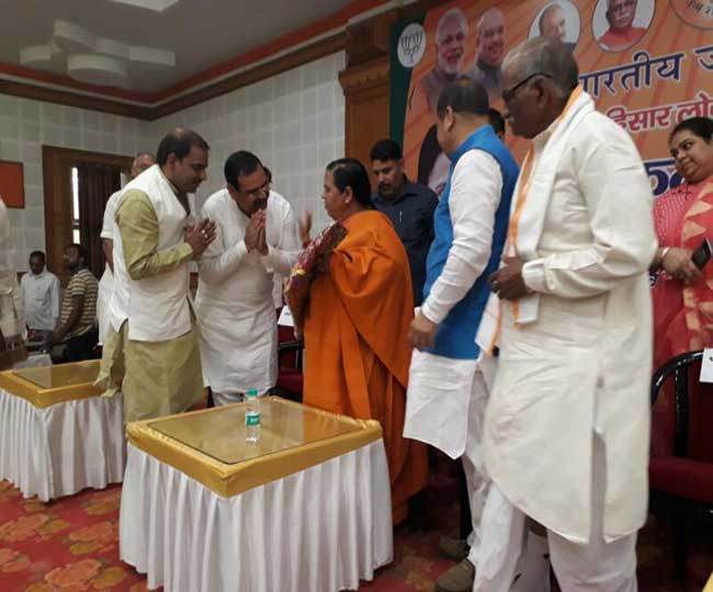 हिसार में केंद्रीय मंत्री उमा भारती के कार्यक्रम में मौजूद भाजपा नेता व कार्यकर्ता।