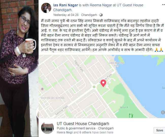 IAS अफसर रीना नगर ने गाजियाबाद जाने के लिए कर्फ्यू पास मांगा है। उनका यह भी कहना है कि उन्हें अभी तक सुरक्षा नहीं दी गई है।