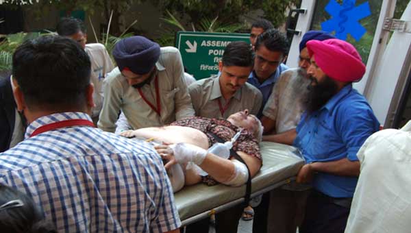 घायलों को मोहाली के मैक्स अस्पलात में ले जाते स्वास्थ्यकर्मी।