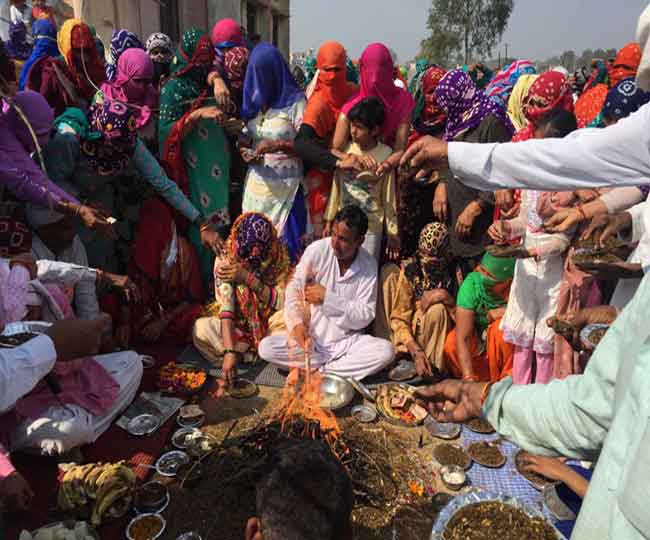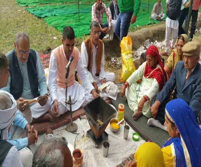भिवानी के धनाना गांव में हवन करते जाट आंदोलनकारी।