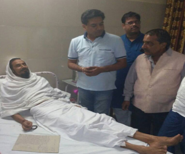 राेहतक पीजीआइ में संत गोपालदास से मुलाकात करते कपिल मिश्रा।