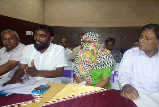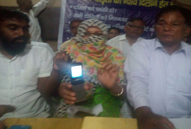 रोहतक में रविवार को पत्रकारों से बात करती छात्रा की मां व दलित संगठनों के प्रतिनिधि।
