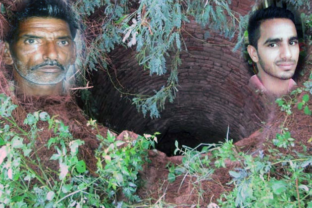 वह कुएं जिसमें से गोरा सिंह (बाएं) को राहुुल (दाएं) ने निकाला।