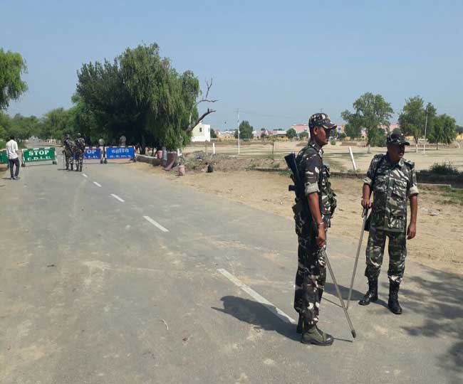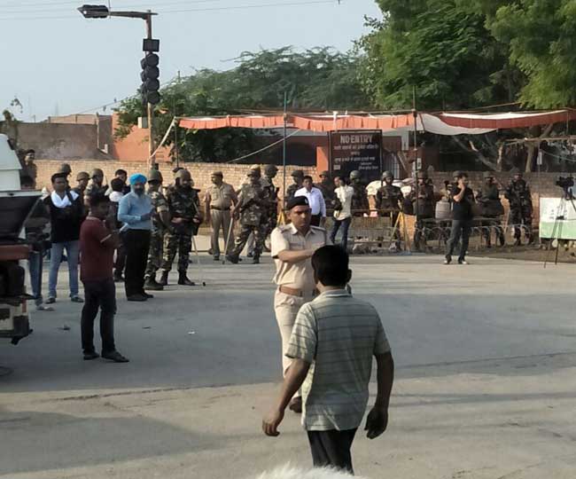 तलाशी शुरू होने के दौरान डेरा सच्‍चा सौदा के पास के क्षेत्र में तैनात अर्द्ध सैनिक बलाें के जवान।